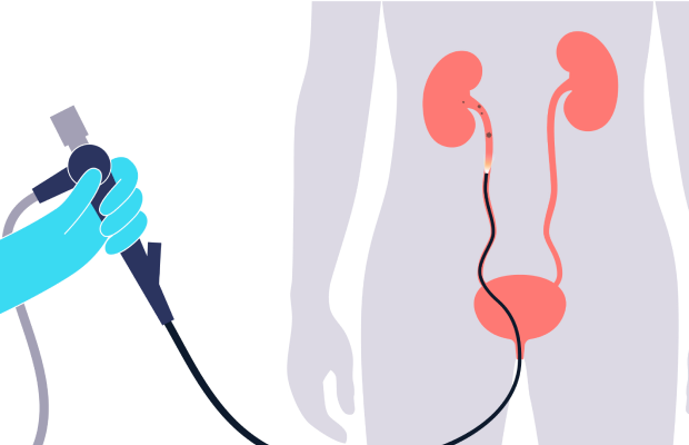 요관내시경은 직경이 매우 가는 내시경 장비를 요도 → 방광 → 요관 순으로 삽입하여