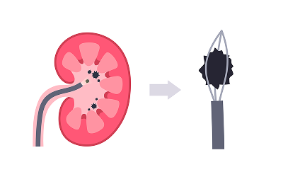 결석 위치까지 접근합니다. 결석을 직접 확인한 뒤 레이저(홀뮴 레이저 등)를 이용해 분쇄하거나 바스켓 기구로 제거합니다.