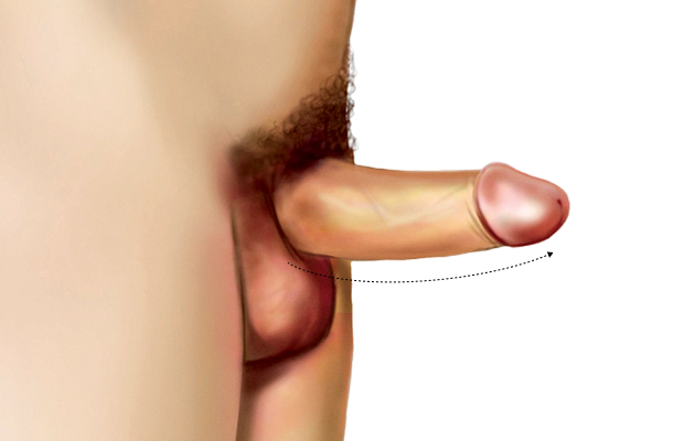 하지만 일부에서는 피부가 위쪽까지 당겨 올라와 음경 하부를 덮는 구조를 형성합니다.