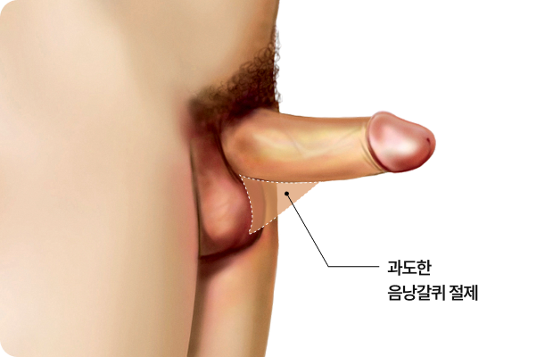 이 경우에는 외형상 길이가 짧아 보이거나 발기 시 당겨지는 느낌이 나타날 수 있습니다.