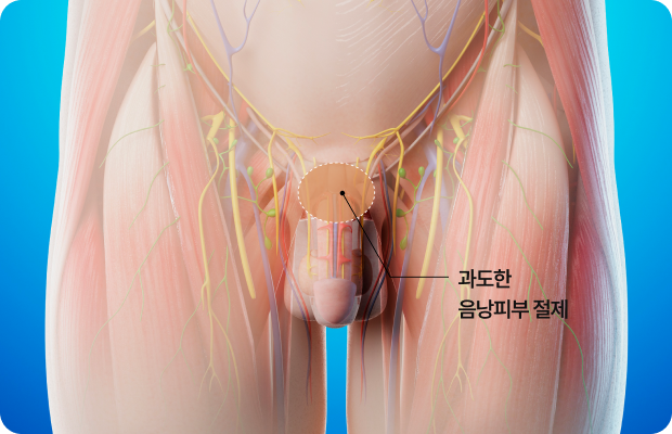 음낭갈퀴제거술은 음경과 음낭 사이의 경계선을 복원하여 하부 라인을 보다 분명하게 만드는 수술입니다. 과도하게 연결된 피부를 정리함으로써 외형적 균형을 회복하고 피부 장력을 분산시키는 데 목적이 있습니다.
