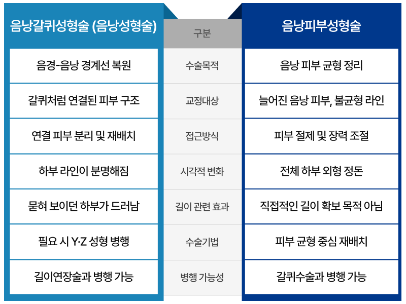 음낭갈퀴 교정은 피부 연결 구조와 장력 상태에 따라 수술 방법이 달라집니다.